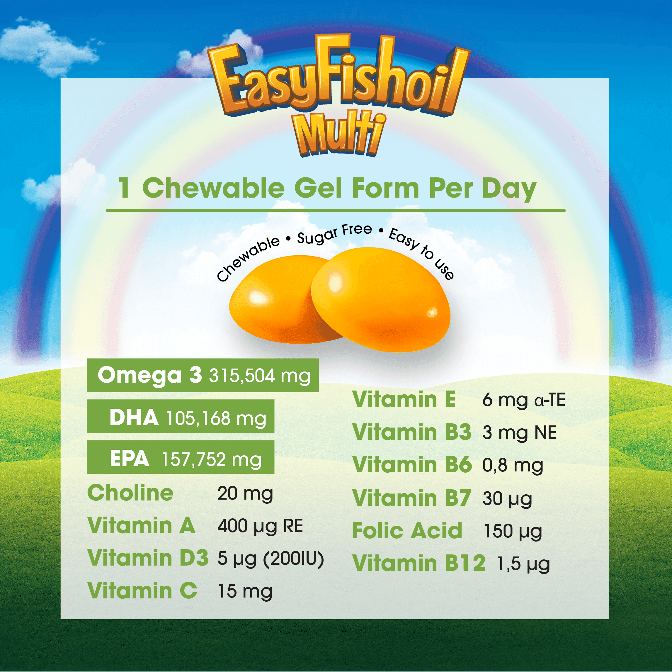 EasyFishoil Multi can help fill these nutritional gaps, ensuring they receive adequate amounts of key nutrients for growth and development. EasyFishoil Multi is a convenient way to ensure children are getting the necessary nutrients to support healthy bone growth, cognitive development, and overall physical growth.